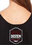 Unisex Tee "99 Donuts" quote on front. Devil's Dozen logo on back. Color: Black Model size: Large